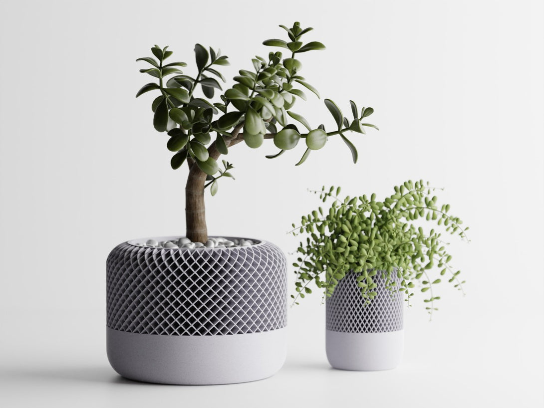 Apple HomePodの洗練されたフォルムから着想を得た、モダンでスタイリッシュな鉢です。