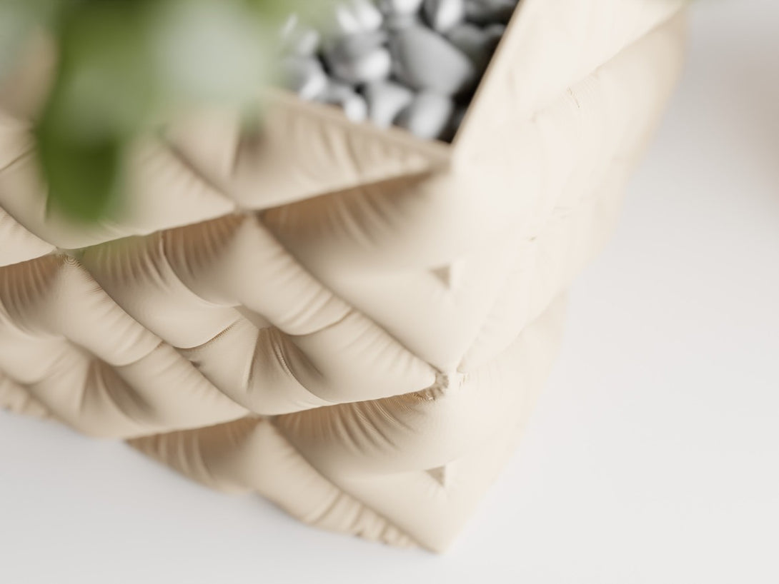 ふんわりとしたクッションのような蓬松感が目を引く【琉綉鉢】は、洗練されたデザインと機能性を兼ね備えたプランター。軽量でエコな素材を使用しているため、インテリアとしても美しく映える上質な仕上がりが特徴です。