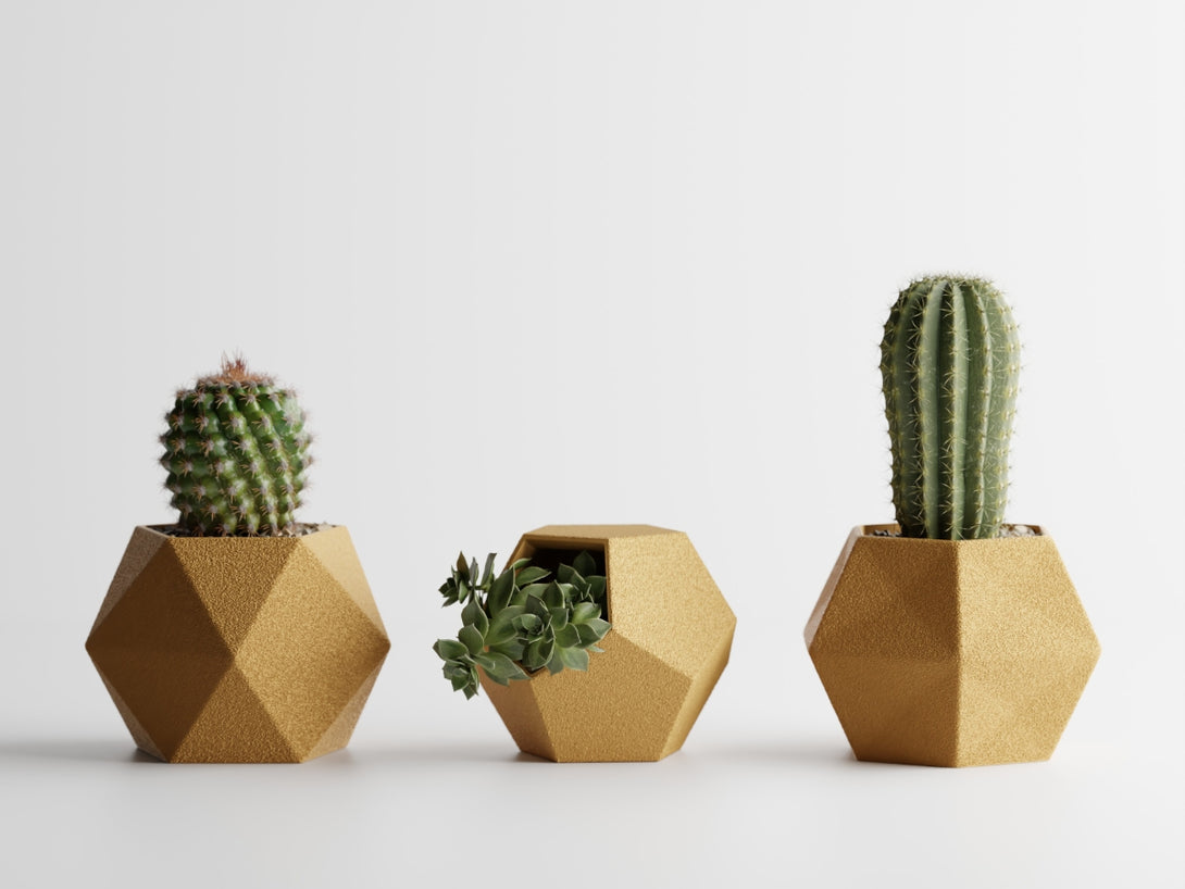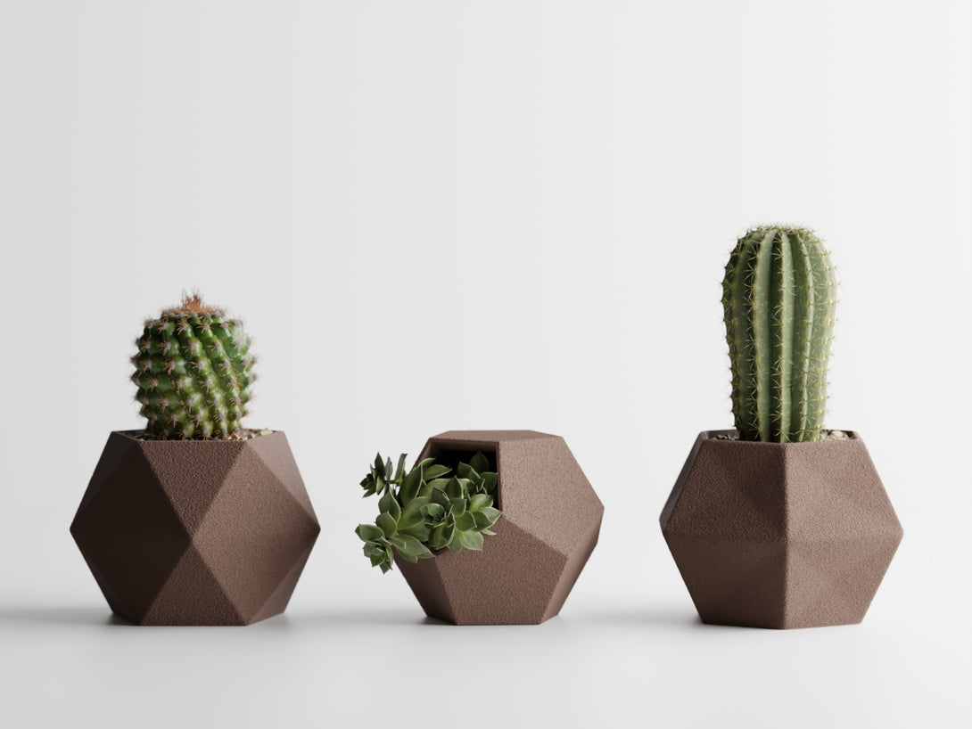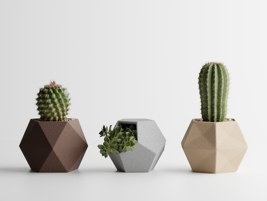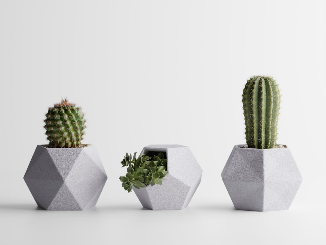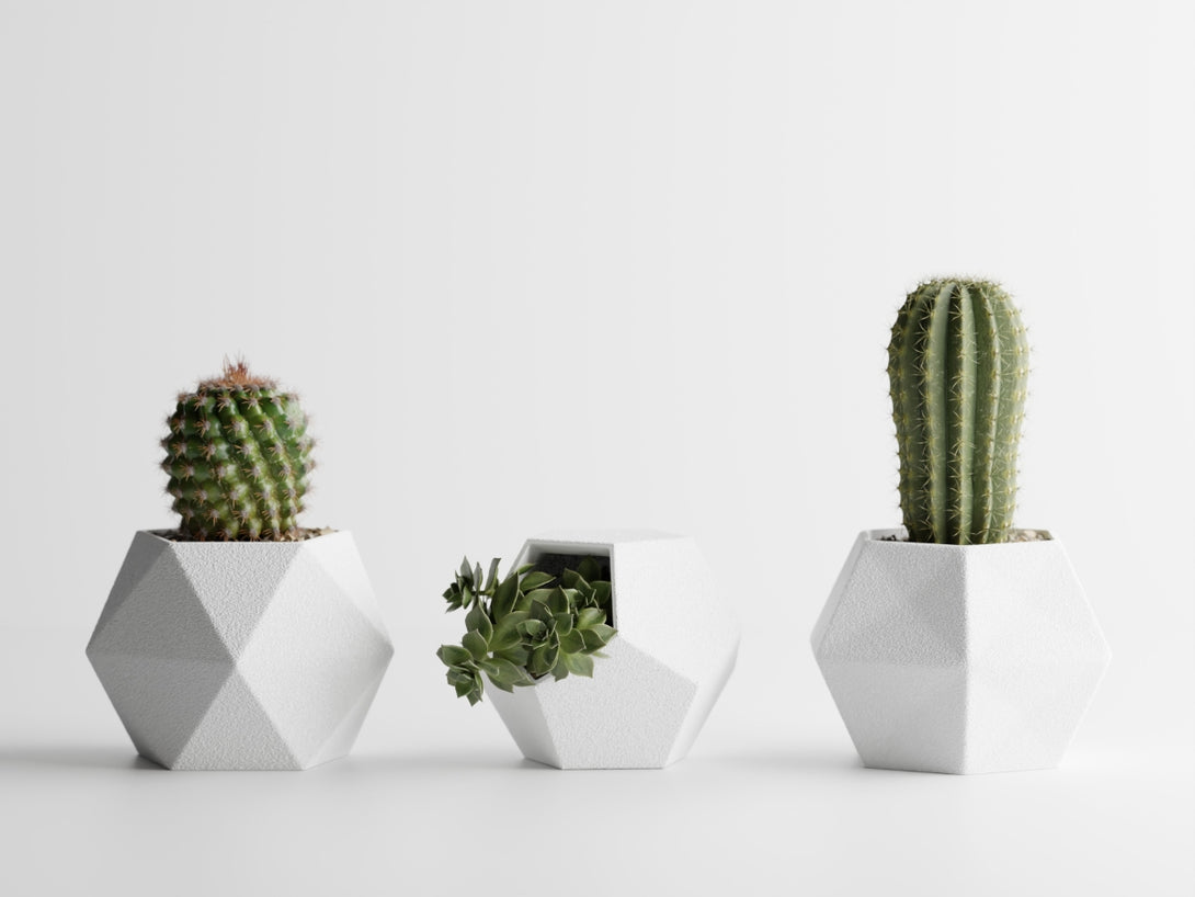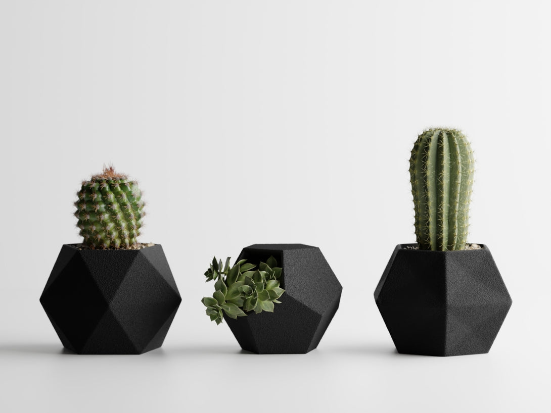 空間に構造とエレガンスをもたらす、モダンな幾何学デザインのプランターセット【三景鉢】。