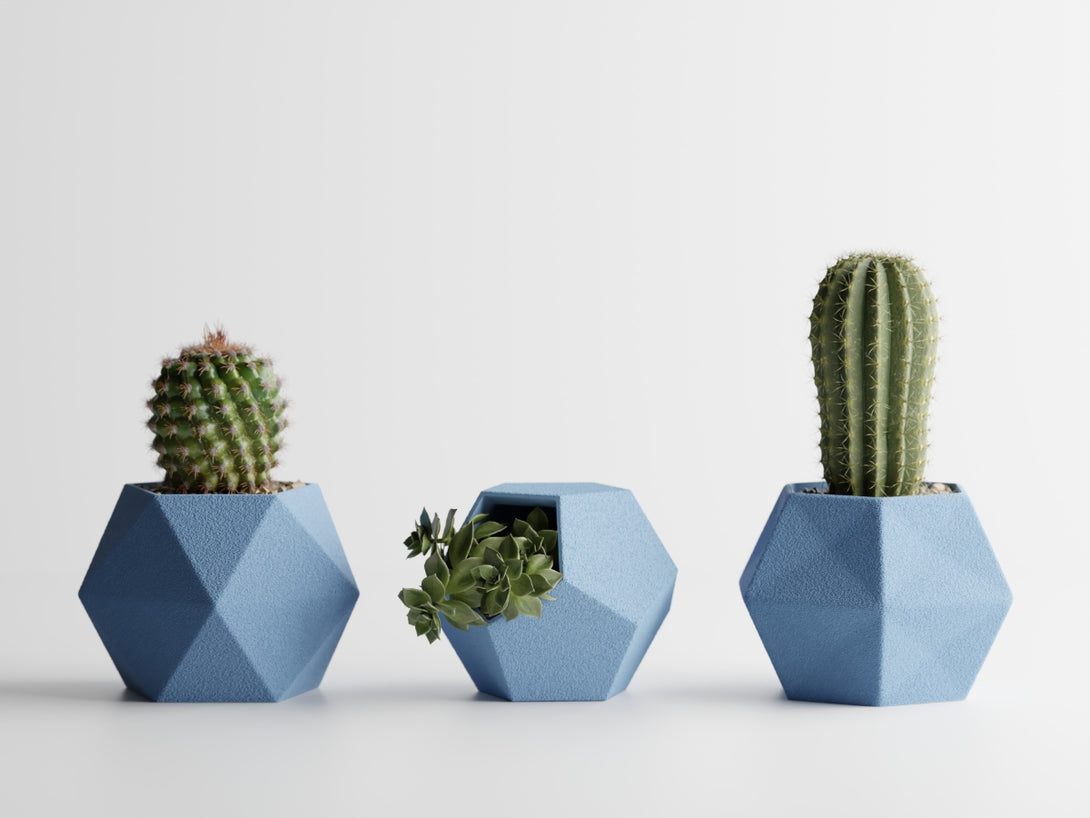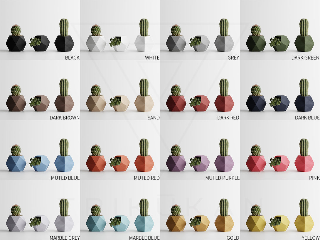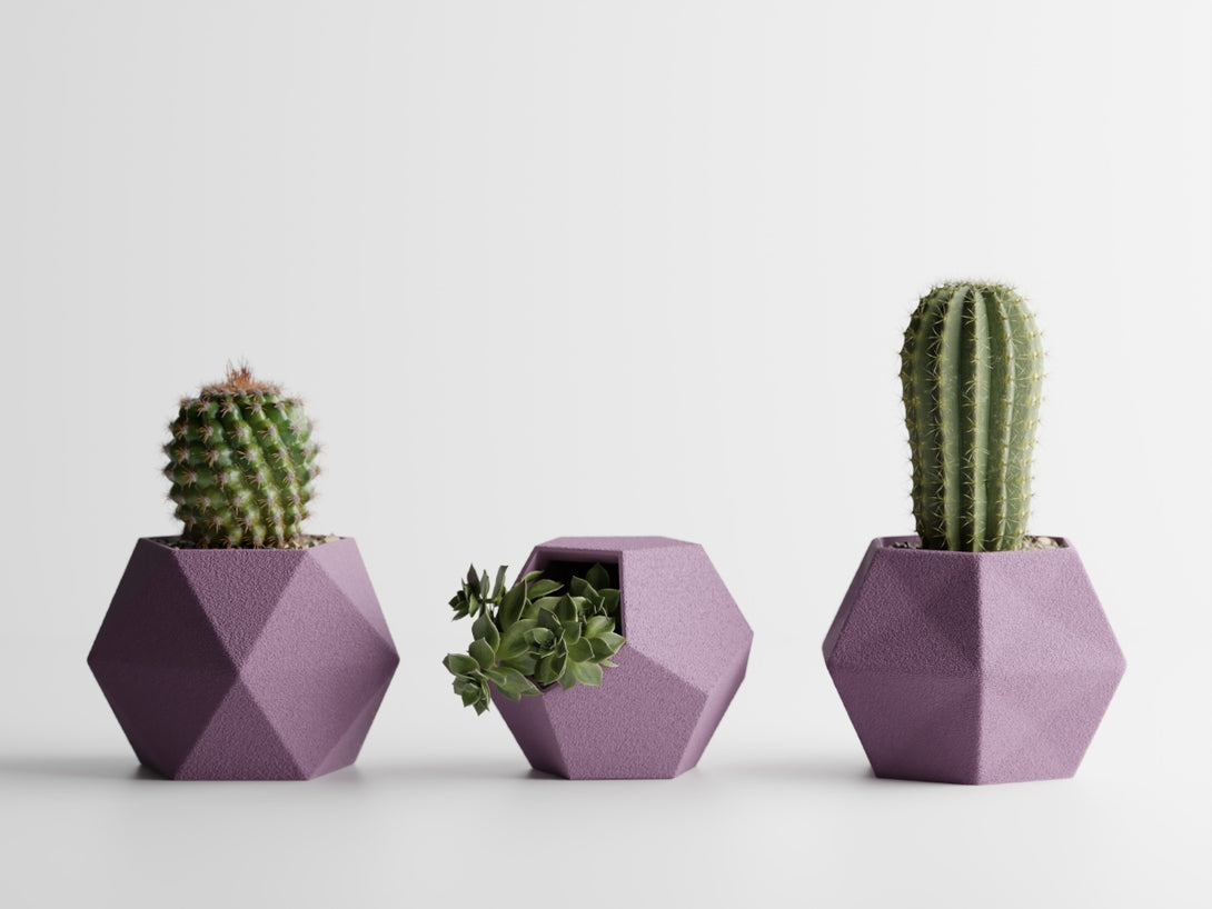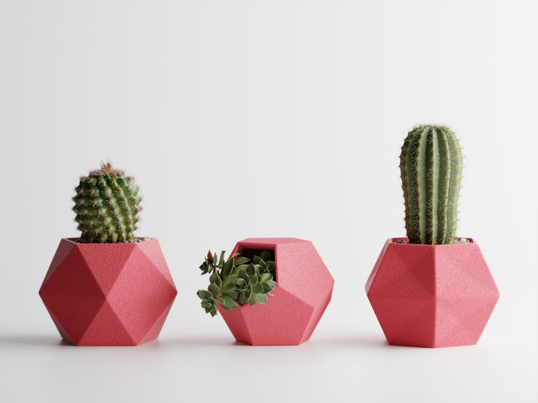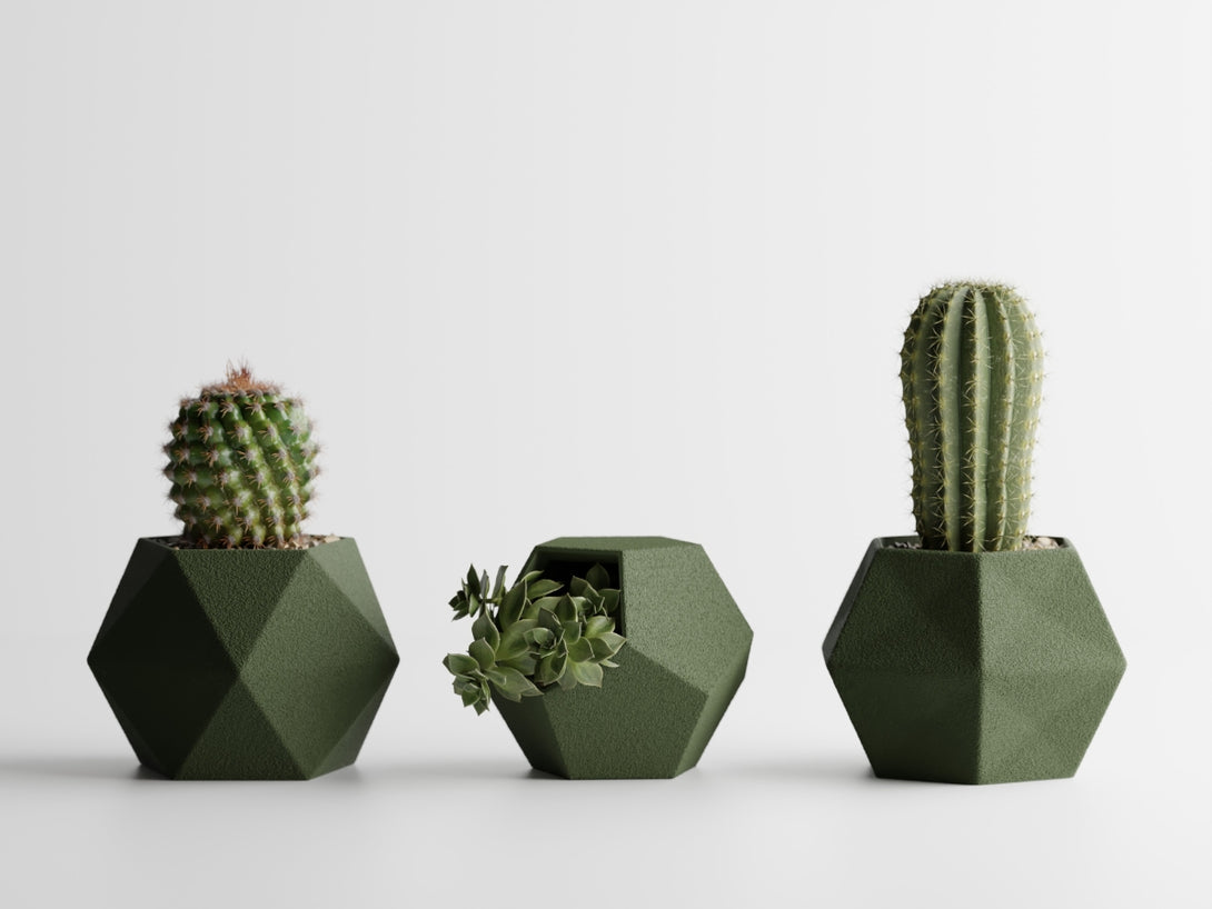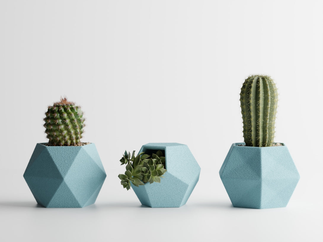 空間に構造とエレガンスをもたらす、モダンな幾何学デザインのプランターセット【三景鉢】。