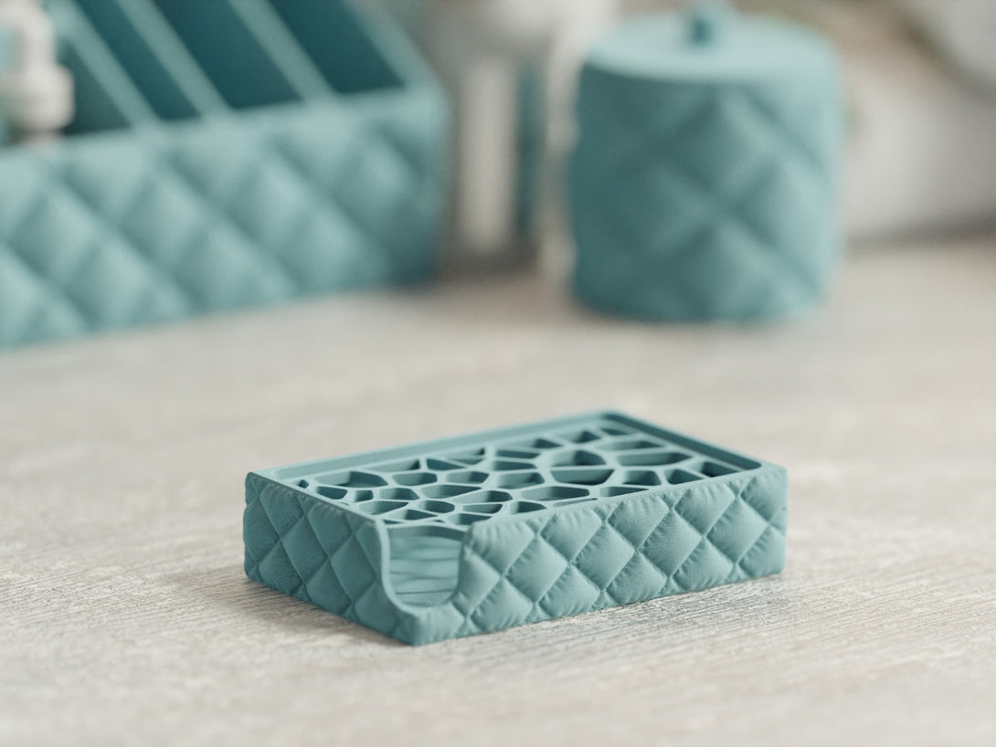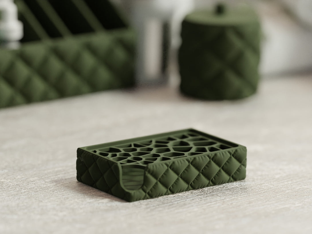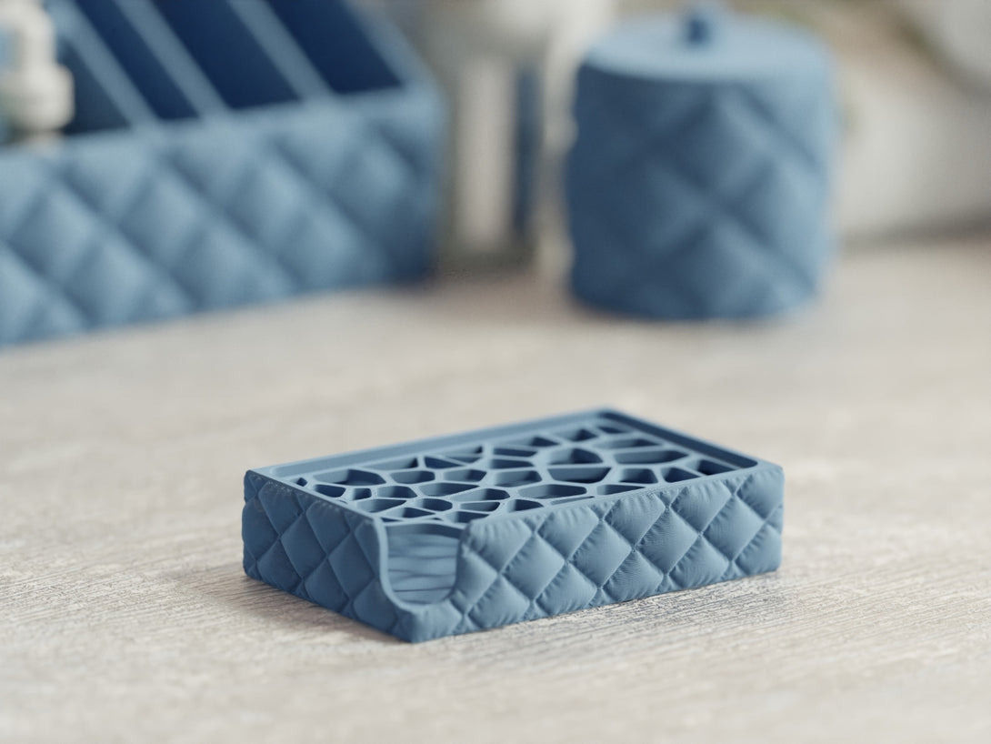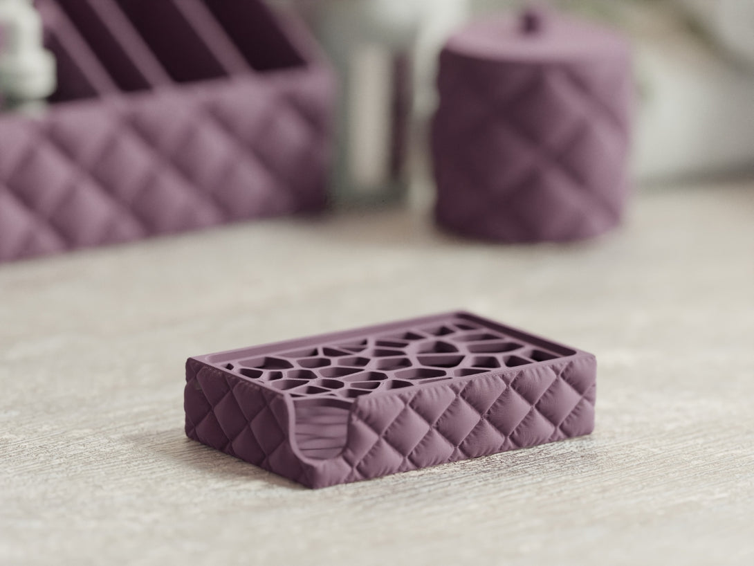 セットには、メイクアップオーガナイザーや歯ブラシスタンド、ソープディッシュなど、日常的に使用するアイテムが含まれています。
