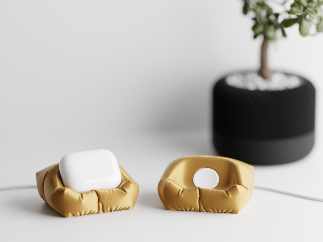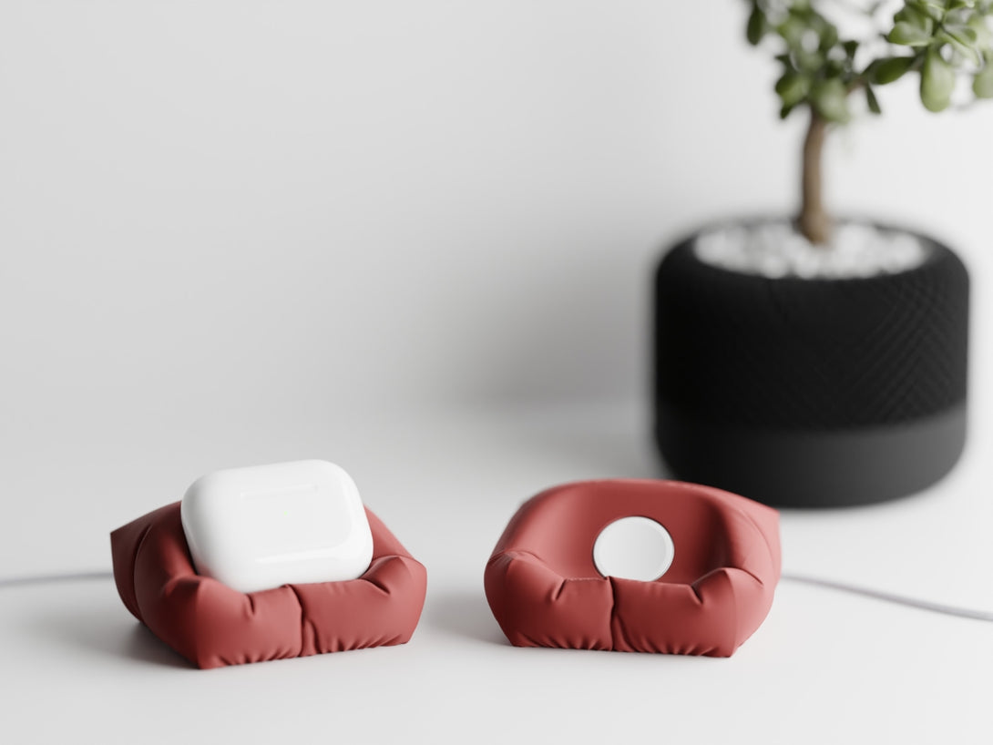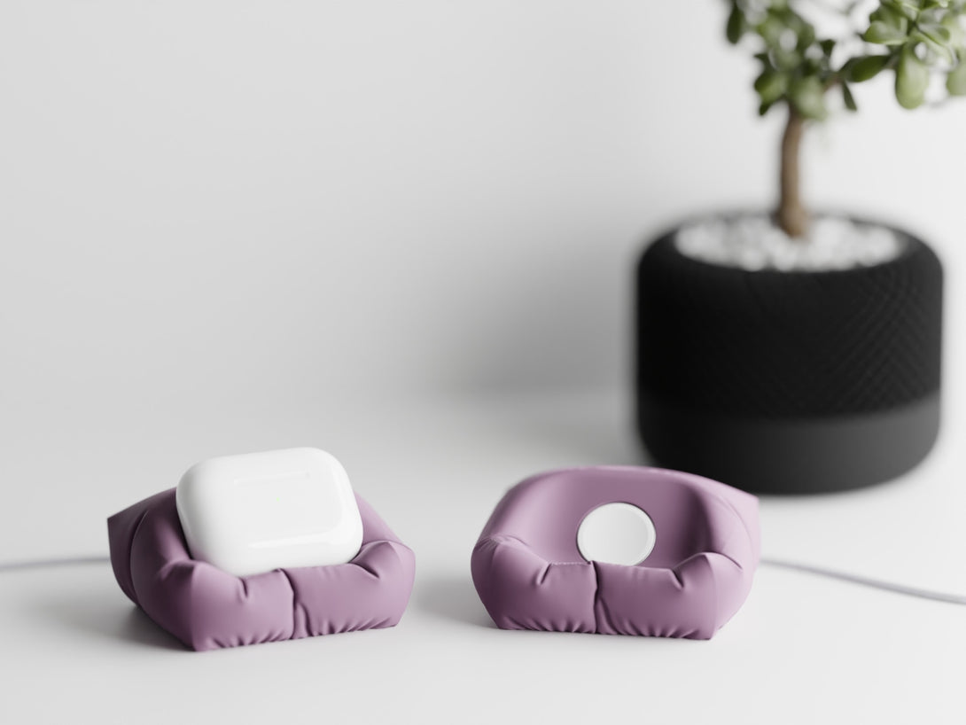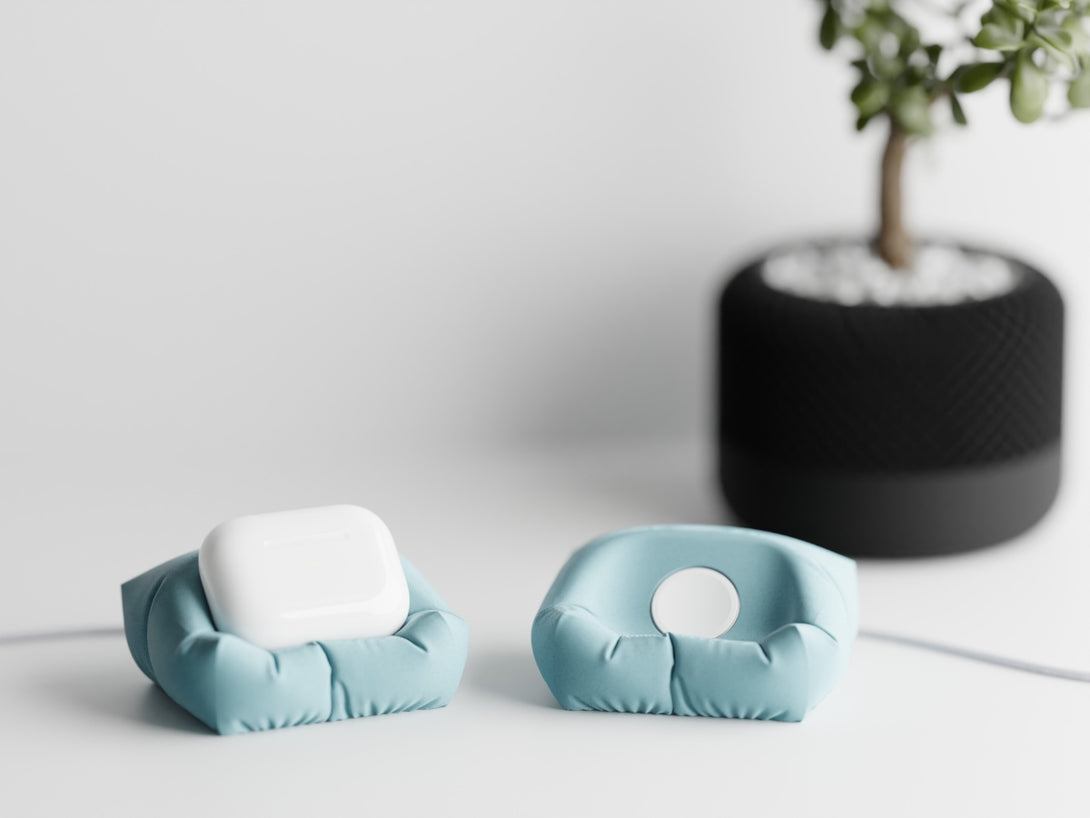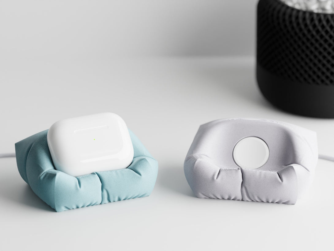 AirPodsを心地よく支える【Apple Watchの充電器対応 エアポッドピロー】が登場。