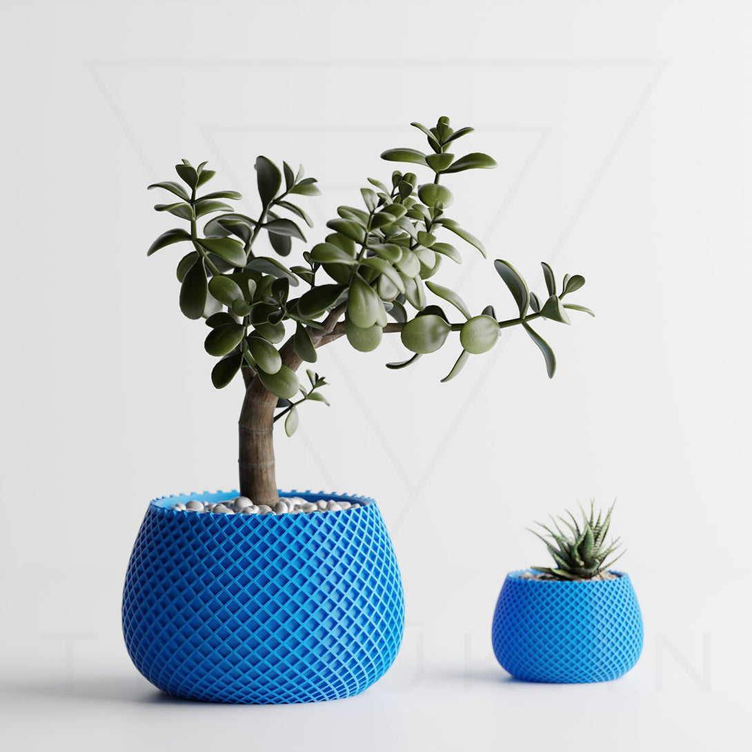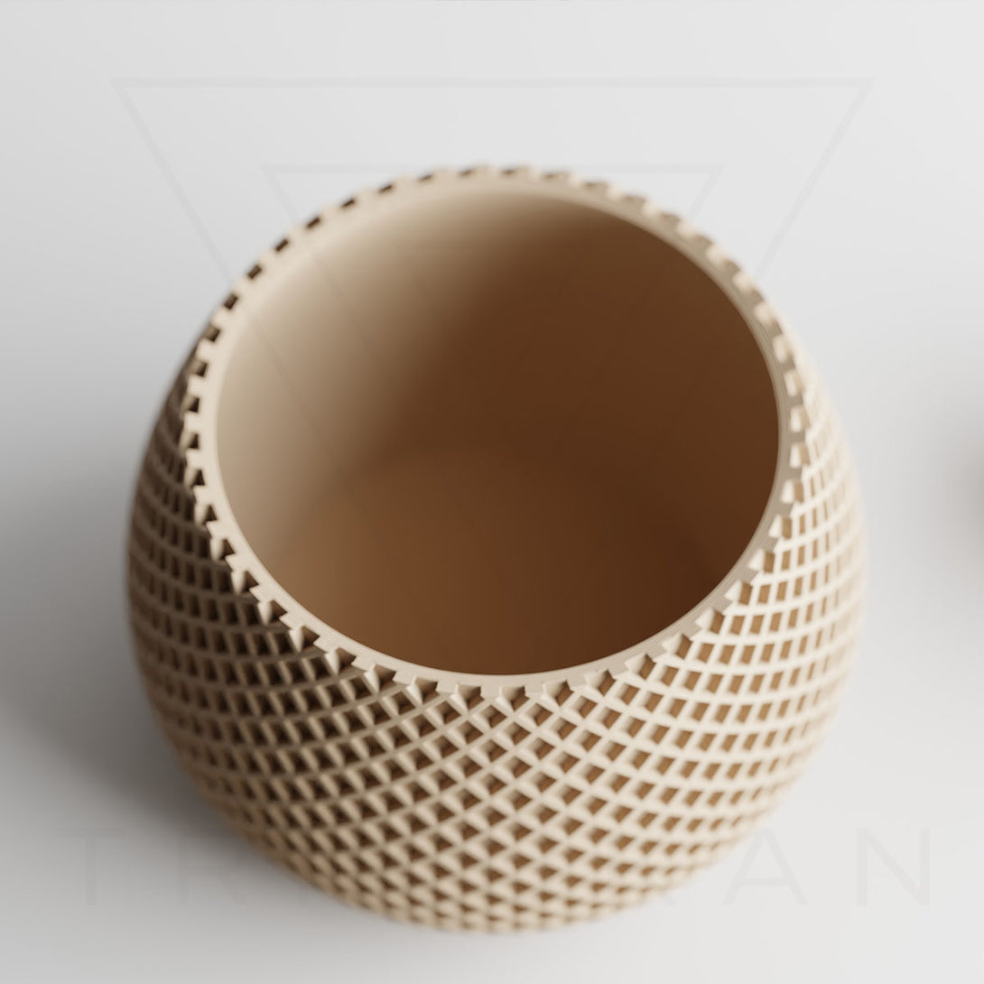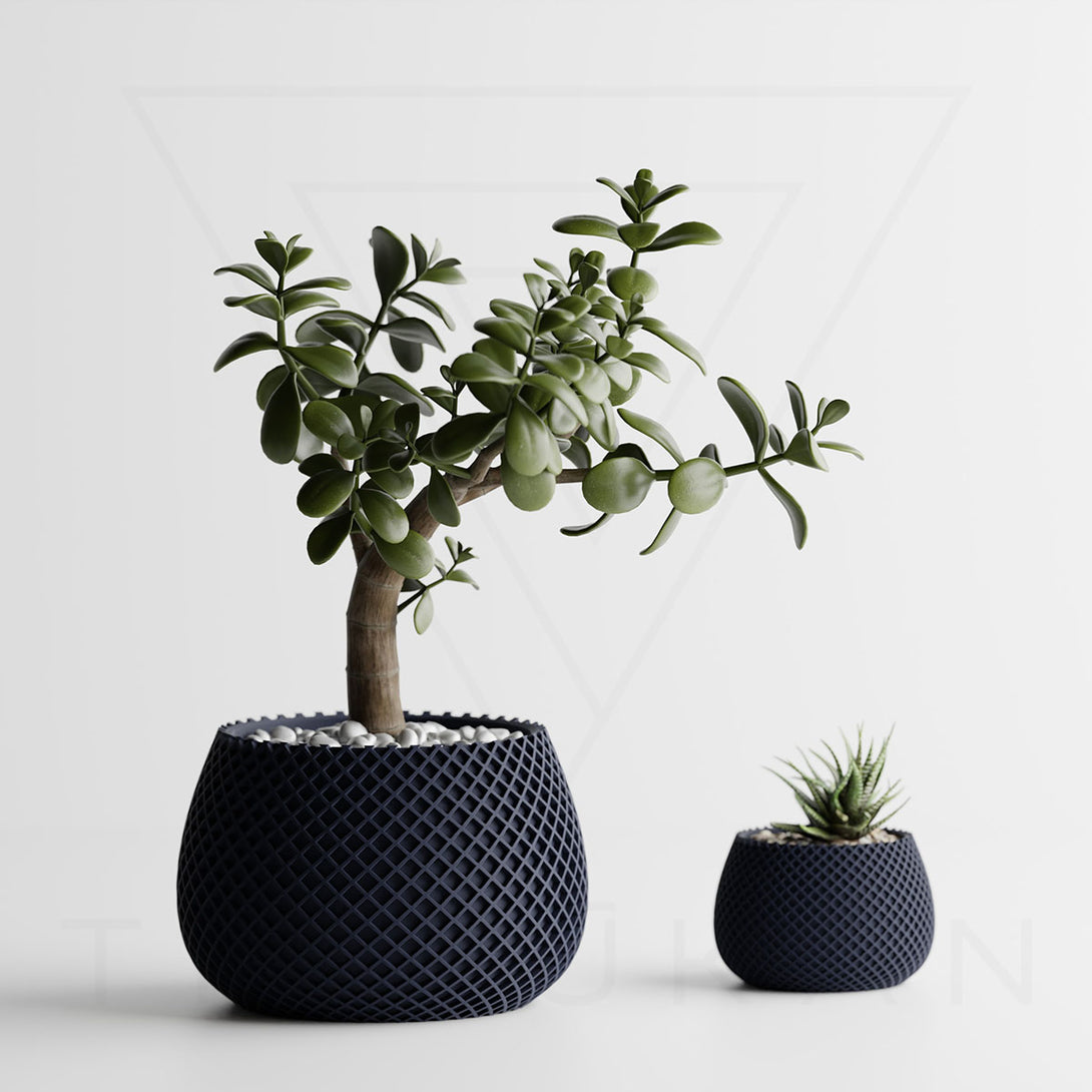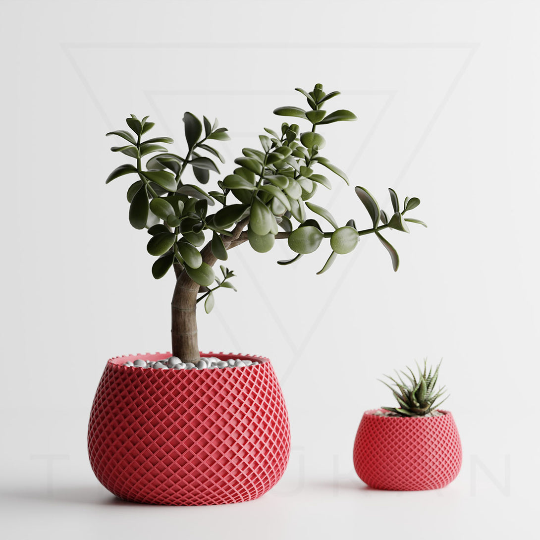 伝統的な編み模様を思わせるデザインは、クラフト感とモダンさを兼ね備え、植物の魅力を引き立てつつ空間に独自の個性を添えます。